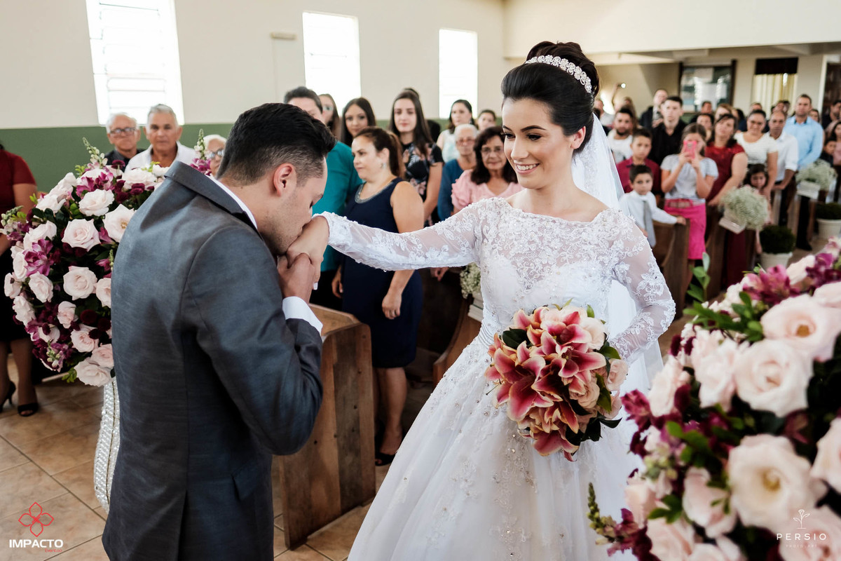 Se fosse para escolher uma palavra para resumir o casamento da Daiane e do Daymon seria : Emoção. Pois foi o sentimento que mais esteve presente no grande dia deles. Casamento com direito a oração da noiva antes da entrada triunfal, daminha linda que entrou cantando, fogos de artifício, limusine e muita emoção em todos os momentos, enfim, um casamento abençoado. A cerimônia aconteceu na IEAD e a recepção na Chácara Tucumantel, que contaram com uma decoração linda em tons de rosa e marsala.